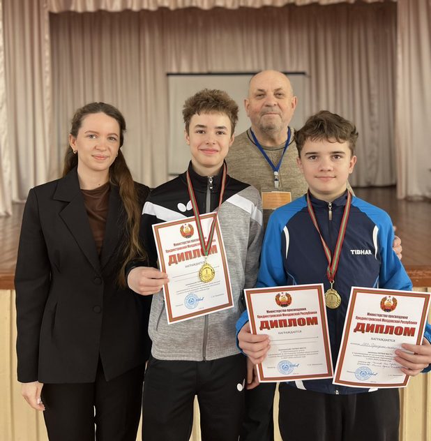 И вот такие соревнования прошли в Дубоссарах 21 февраля 2026 года, под названием «Республиканская Спартакиада среди школьников по настольному теннису». В соревнованиях приняли участие команды со всех городов и районов Приднестровья, которые в обязательном порядке должны были выиграть соревнования по своим городам. И вот финал. 7 сильнейших команд юношей и девушек боролись за звание Чемпиона и за медали. Сенсации не произошло, как и прогнозировалось, победителями Республиканской Спартакиады среди девушек стала команда МОУ РСОШ №4 г. Дубоссары, в составе мастеров спорта – Алины Пулукчу и Светланы Гулько. Дубоссарские девушки на этой Спартакиаде не проиграли ни одной партии, обыграв всех своих соперников со счётом 2:0. У юношей конкуренция была острее, неплохо были подготовлены команды Рыбницы, занявшие 2 место и команда г. Бендеры, занявшая 3 место. А победителями, в очередной раз стали юноши МОУ «Дубоссарская Гимназия №1» г. Дубоссары, в составе мастера спорта – Андрея Мищишина и 2 -разрядника Фрунза Игоря. Конечно, здесь хотелось бы отметить Мищишина Андрея, который был настоящим лидером, и в решающих поединках (в паре) приносил важные очки.